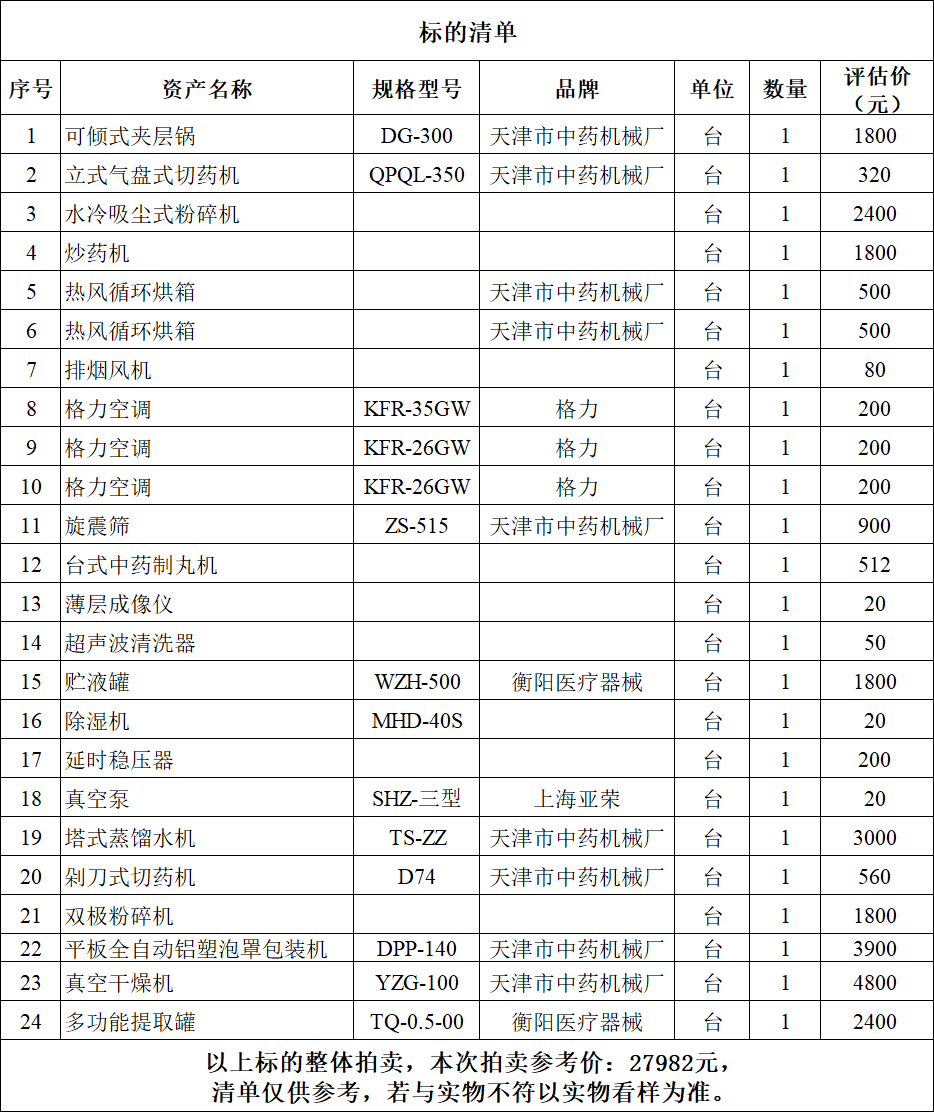 標(biāo)的詳情見下方清單(清單僅供參考,若與實(shí)物不符以實(shí)物看樣為準(zhǔn))。