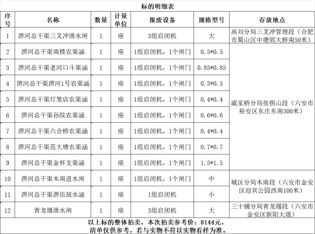 一、拍賣標(biāo)的:報廢水利基礎(chǔ)設(shè)施設(shè)備一批,參考價:8144元。